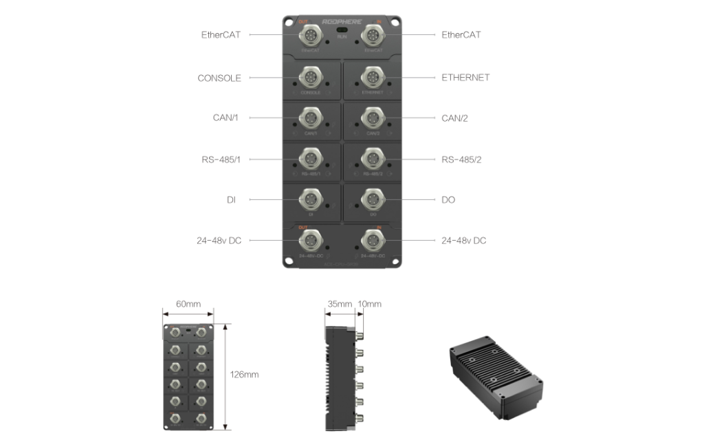 搭載國產ARM 64位6核處理器的高性能主控制器 / 搭載ACEphere Runtime或CODESYS RTE / 提供EtherCAT、CAN、RS 485等通訊能力