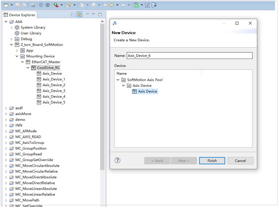 根據PLCOpen for Motion Control國際規范,在ACEPHERE項目中建立運動控制功能塊(例如MC_Power, SMC_GroupPower, MC_MoveAbsolute或MC_MoveVelocity等)