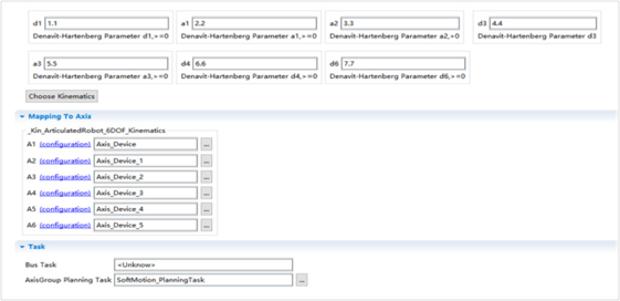 ■ 可以方便的配置預定的運動學模型的軸組參數