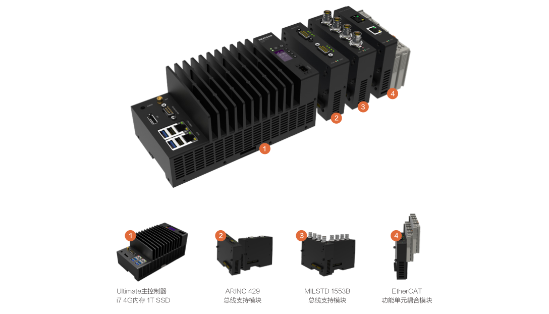 面向復雜環境、功能模塊化、自主可控的高性能控制器系列,包括Ultimate主控制器、MILSTD 1553B總線支持、ARINC 429總線支持、EtherCAT功能單元耦合等模塊。采用雙機一體資源硬劃分技術:一機雙份外設資源,可通過實時Hypervisor進行資源硬劃分實現一機兩用(實時控制+應用執行)。多PCI-E功能模塊可連續級聯,無需考慮PCI-E接口數量,功能模塊設備可快速插拔,性能強大,能夠很好的適應各類復雜、軍用場景。